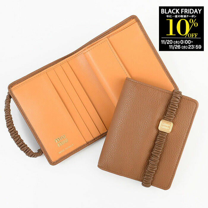 14.【10%OFFクーポン】MIU MIU ミュウミュウ 財布 ウォレット レザーバンド付き 二つ折り財布 5MV204 2CSK レディース ブラウン レザー 折り財布