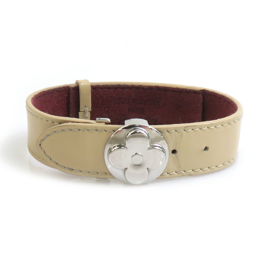 26.ルイ ヴィトン LOUIS VUITTON ブレスレット グッドラック レザー/メタル ベージュ/シルバー レディース M64445 送料無料【中古】 e61519