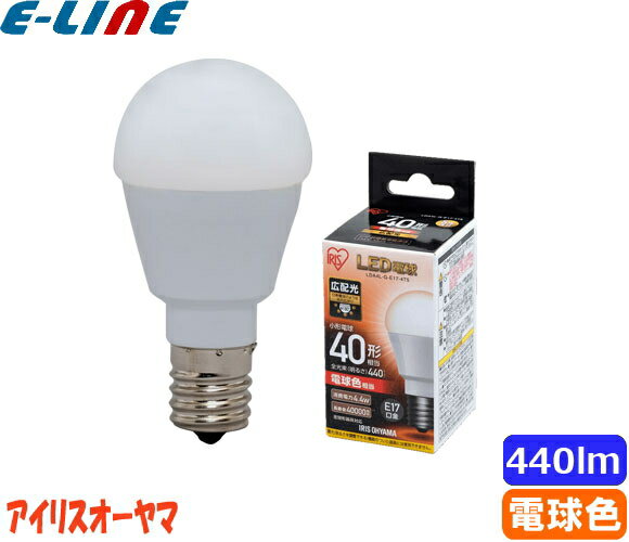 LED電球 E17 全方向タイプ 小形電球 40W形相当 【特徴】 ・約10年間取り替え不要 ・光が広がる全方向タイプ ・密閉形器具対応。器具の種類によって、使用できなかったり、寿命が短くなる場合があります。 【用途】 ・室内向き ・リビングやダイニングなどの照明に最適です。 【商品詳細】 ■メーカー:アイリスオーヤマ ■形番:LDA4L-G-E17/W-4T5 ■光色:電球色相当 ■口金:E17(直径17mm) ■全光束:約 440lm ■定格消費電力:約 4.4W ■定格入力電流:約 0.077A ■