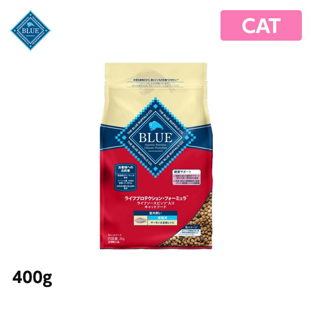 2.ブルーバッファロー 猫用 BLUE LPF ブルー LPF 成猫用室内飼い サーモン&玄米 400g (ライフプロテクションフォーミュラ キャットフード ペットフード)