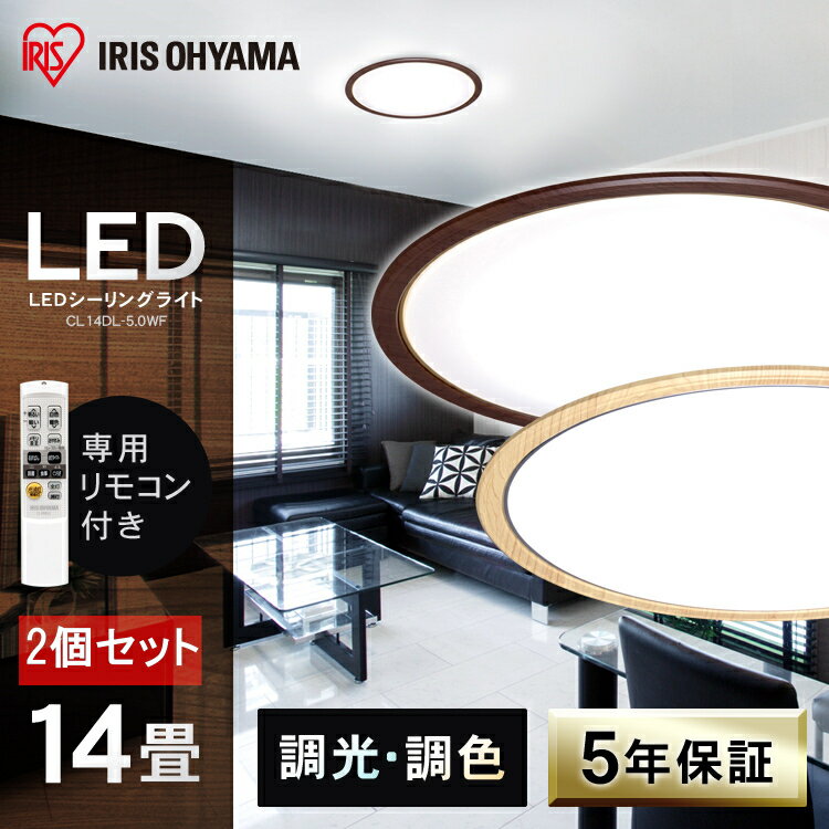 3.【2台セット】【メーカー5年保証】 シーリングライト LED ウッドフレーム 14畳 アイリスオーヤマ 送料無料 木枠 シーリングライト おしゃれ 14畳 led リモコン付 照明器具 LED照明 CL14DL-5.0WF 調光 調色 新生活 あす楽 [cpir] iris60th