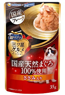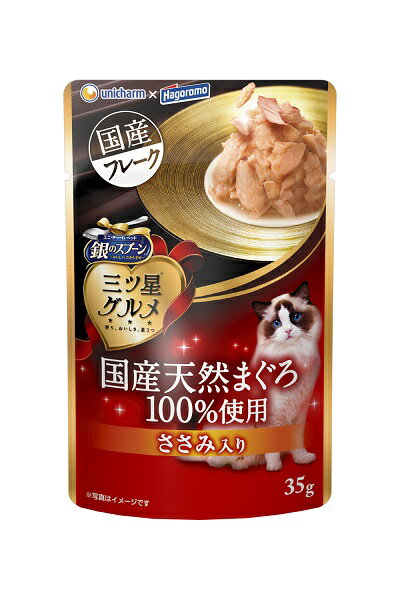 5.【ユニチャーム】銀のスプーン 三ツ星グルメパウチ 国産天然まぐろ100% フレーク まぐろささみ入り 35g