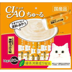 15.【お取り寄せ】いなば CIAO ちゅ〜る(ちゅーる) まぐろ 海鮮ミックス味 (キャットフード・猫のエサ) 14g×20本