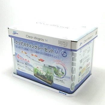 クリアスティングレーセット M355 ■商品外寸 W355 × D230 × H265(mm) ■水容量 水容量:18L ■セット内容 水槽・ガラスフタ・フラットフィルターS (外掛式フィルター)・中和剤 ■メーカー ニッソー 小型水槽セット ●はじめてでも簡単!すぐに始められる観賞魚セットです。 ●フラットフィルターは薄型設計で水槽をスッキリスタイリッシュに見せる外掛けフィルター。新採用のろ過バック方式で汚れを強力吸着!水をクリアに保ちます。 ●淡水・海水両用 淡水・海水両用飼育可能。
