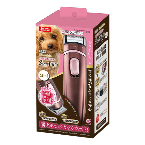 お店TOP>ペット用品>ペットのサークル・雑貨など>ペットの雑貨・ケアグッズ>ペットのハサミ・バリカン>ペットのハサミ>GONTA CLUB コードレスバリカン セミPRO ミニ (1個)【GONTA CLUB コードレスバリカン セミPRO ミニの商品詳細】●摩擦に強いセラミック製可動刃!●刃こぼれしにくいステンレス製固定刃!【GONTA CLUB コードレスバリカン セミPRO ミニの原材料】本体・アタッチメント:ABS、ステンレス 固定刃:ステンレス 可動刃:セラミック【ブランド】GONTA CLU
