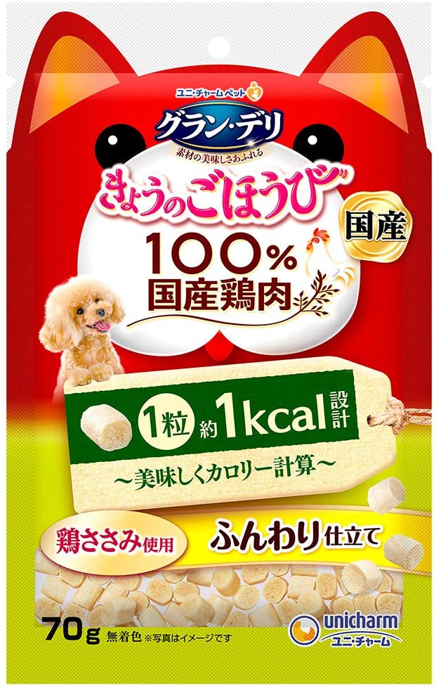 5.【ユニチャーム】グラン・デリ きょうのごほうび 100%国産鶏肉 1粒1kcal 鶏ささみ使用 ふんわり仕立て 70g