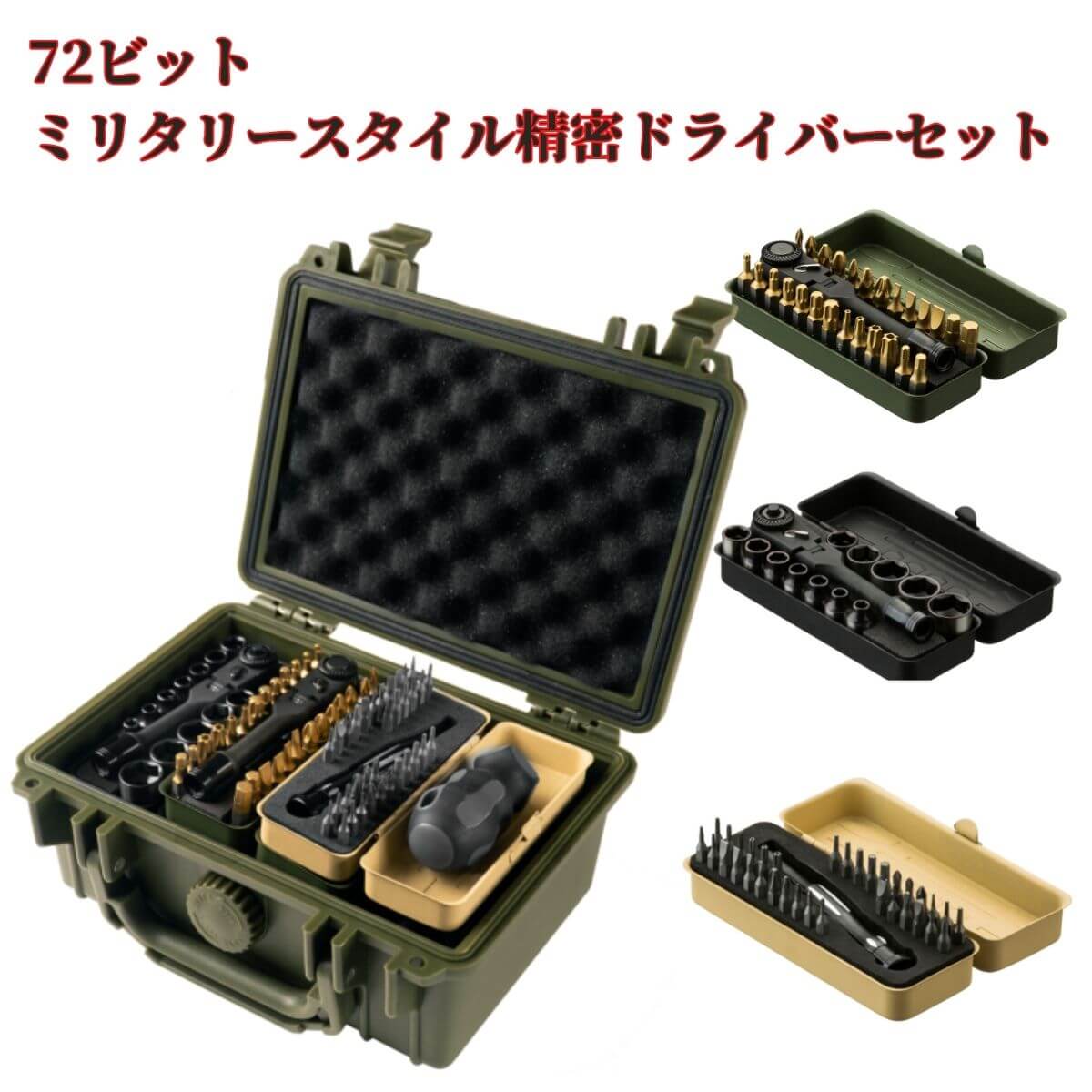 ARSENAL TOOL 商品説明 大小ラチェットレンチ、ドライバーで合計72種類のビットが付属。DIYから精密機械の修理・組み立てまで幅広く対応! ミリタリーテイスト溢れるチタンメッキ加工は、単なる工具だけに収まらない美しさと質感。 コンパクトで軽量。各セットはスマホより軽い 磁気内蔵ビットでネジが吸着。ネジの紛失を防ぐ(カーキ工作工具) 60HRCの高硬度ビット、摩耗や破損に強い。 72歯のラチェット、旋回角度5度で狭い箇所の作業を容易にする。任務を遂行するためのフルセット。日常の全てのミッションを賄