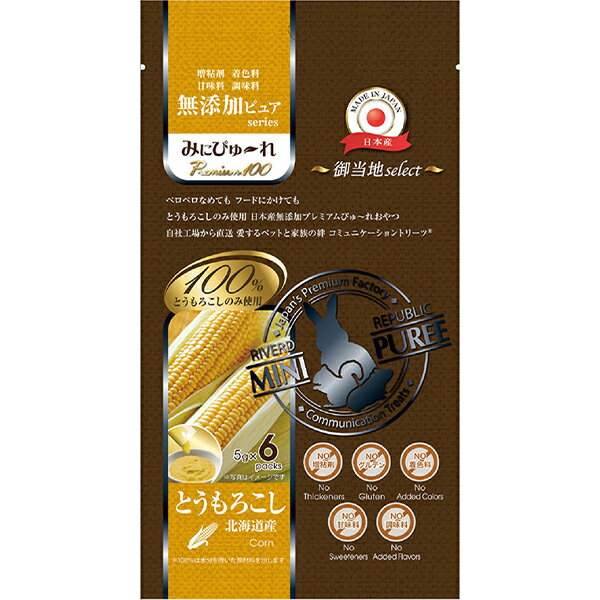 6.みにぴゅーれ 無添加ピュア Premium100 御当地セレクト 北海道産とうもろこし 5g×6本 リバードコーポレーション ▼a ペット フード 小動物 おやつ ウェット 増粘剤 グルテン 着色料 甘味料 調味料 無添加 国産