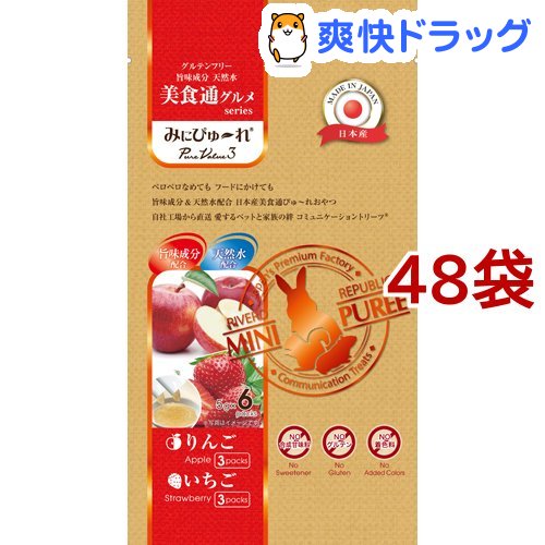 3.【直送便】小動物 おやつ みにぴゅーれ 美食通グルメ PureValue3 りんご / いちご 6本入 日本産【国産/ペットフード】