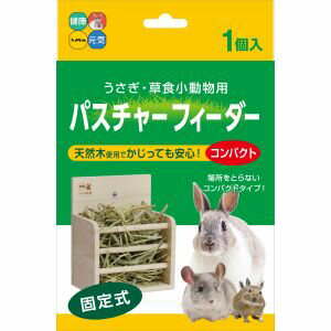 ・うさぎの習性観察から生まれた、草食小動物用固定式牧草フィーダーです。・場所をとらないコンパクトタイプ、かじっても安心の天然木を使用。・固定式だからいたずらされにくい。・前止めにはかじられにくい丸棒を使用。・本体に金属部品不使用。・安全な国産接着材を使用。【材質】本体:天然木付属部品:ワッシャー・蝶ネジ・ナット・ボルト(スチール)【本体サイズ】W120×H170×D85(mm)【使用方法】パスチャーフィーダー本体をケージに固定して牧草を入れてご使用ください。【原産国または製造地】中華人民共和国【諸注意】・