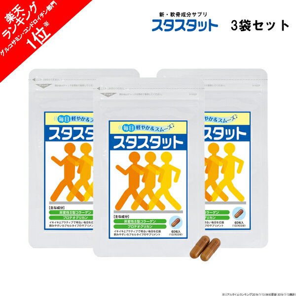 12.【クーポンで最大15%OFF】スタスタット 3袋セット ★アウトレット品のため返品不可★ 【在庫限り】プロテオグリカン サプリ グルコサミン コンドロイチン との相性◎ コラーゲン 非変性 2型コラーゲン msm エラスチン サプリメント 軟骨 膝 ひざ 送料無料