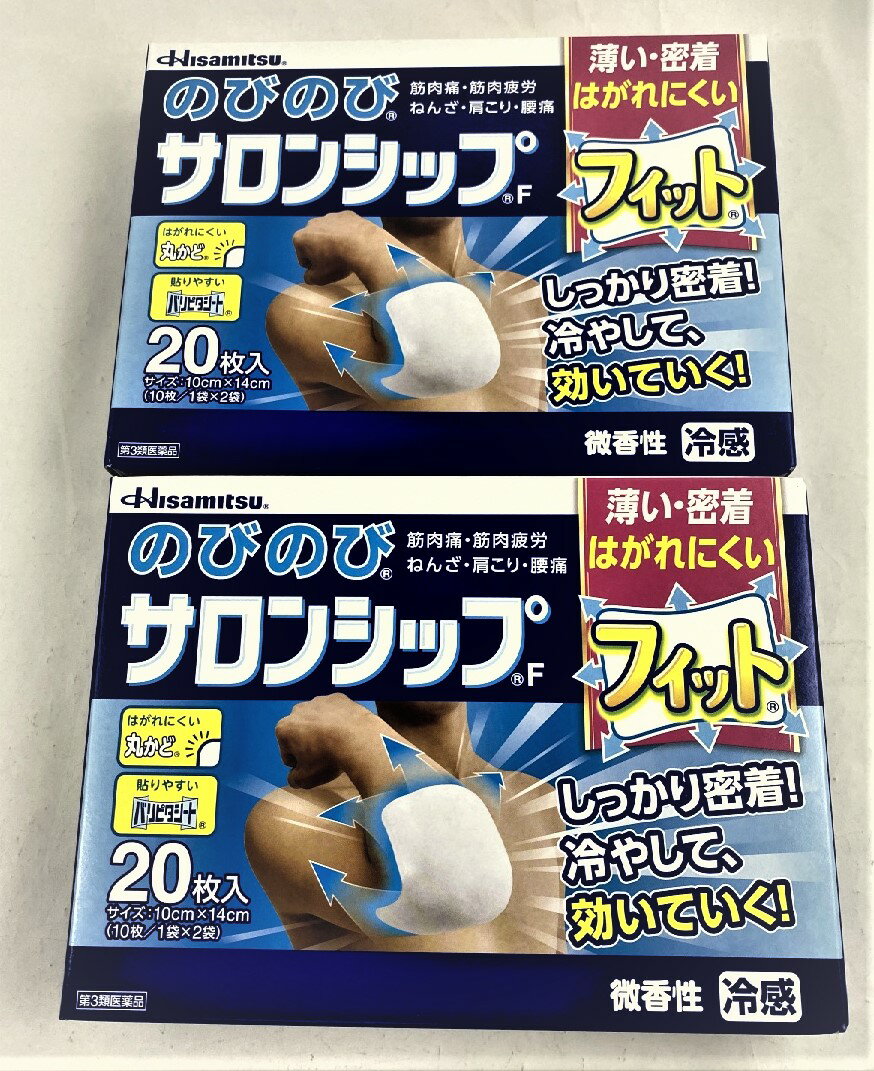 28.【×2箱セット送料込み】【第3類医薬品】久光製薬 のびのびサロンシップF 20枚入 伸縮自在で、関節部位にもぴったりフィット 冷感の鎮痛消炎冷感シップ剤 4987188151396