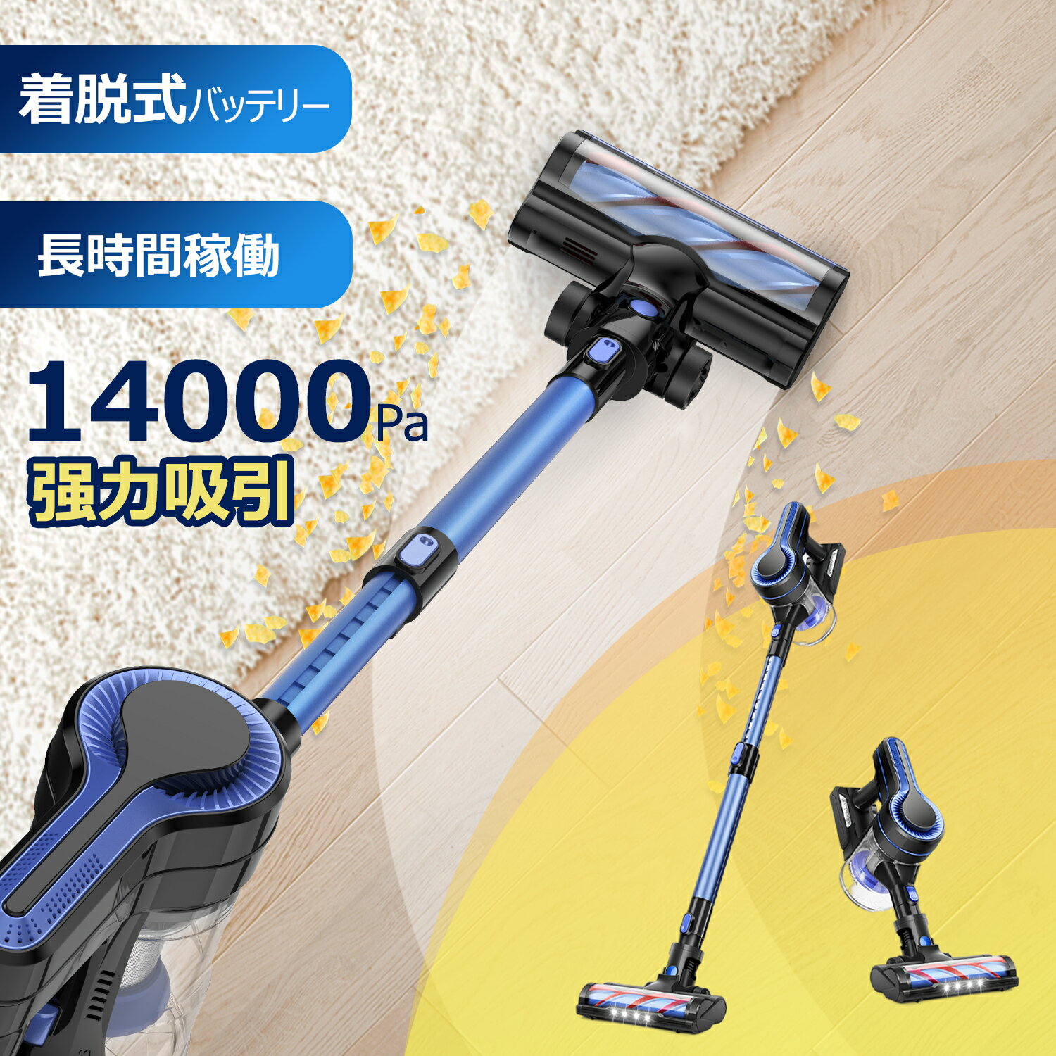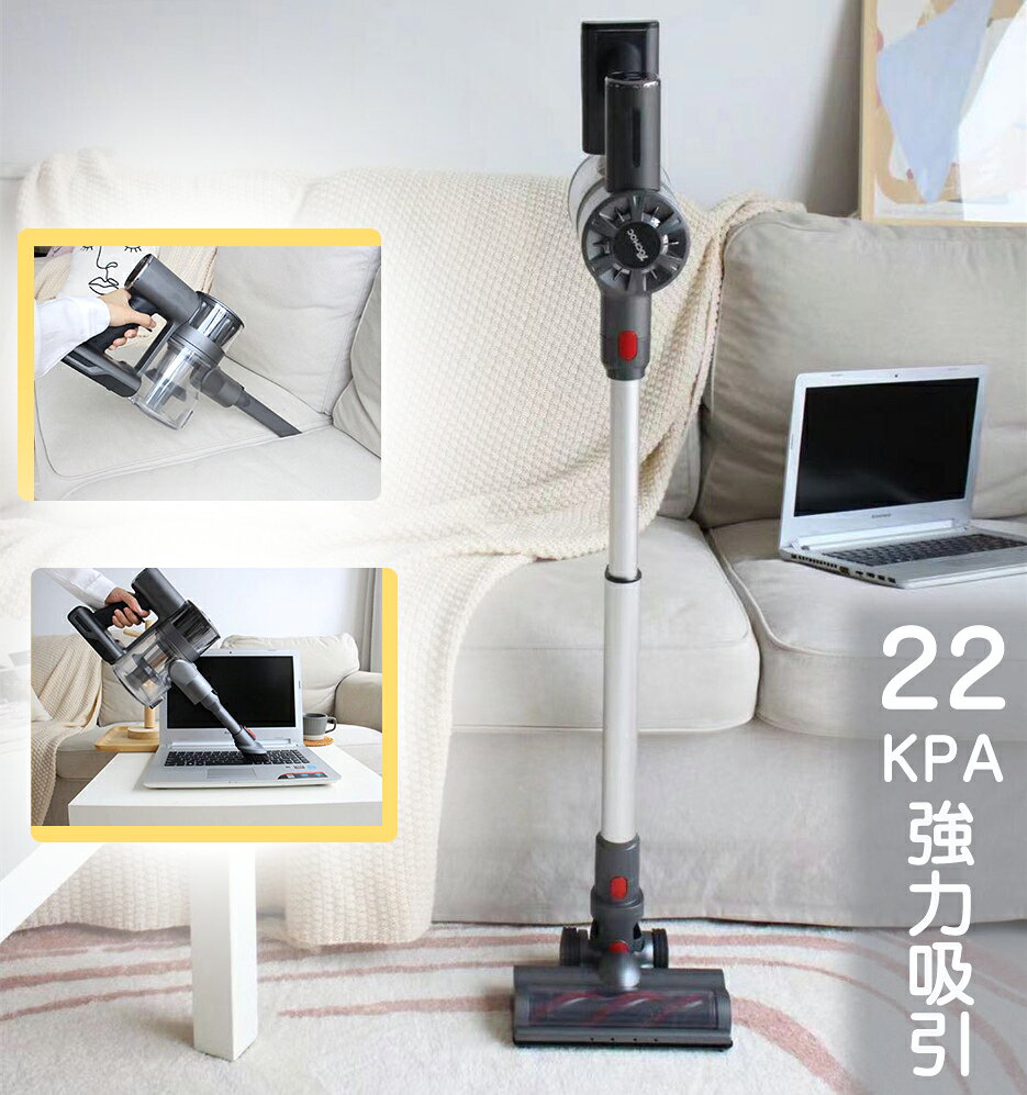 【14000Pa超强力吸引】本製品コードレス掃除機は、H120のアップグレードバージョンで、150W強力モーターを搭載し、10kpaから14kpaにアップグレードしました。ペットの髪、花粉等のアレルギー物質、食べこぼし、ペレット、猫砂、米、コーヒー豆など重くて大きなゴミまでもしっかり吸い込まれる。 【長時間稼働&着脱式バッテリー】2200mAh大容量バッテリーを搭載しており、わずか4.5時間程度でフル充電を実現。フル充電の場合は標準モードで最大30分間、パワフルモードで最大15分間の使用が可