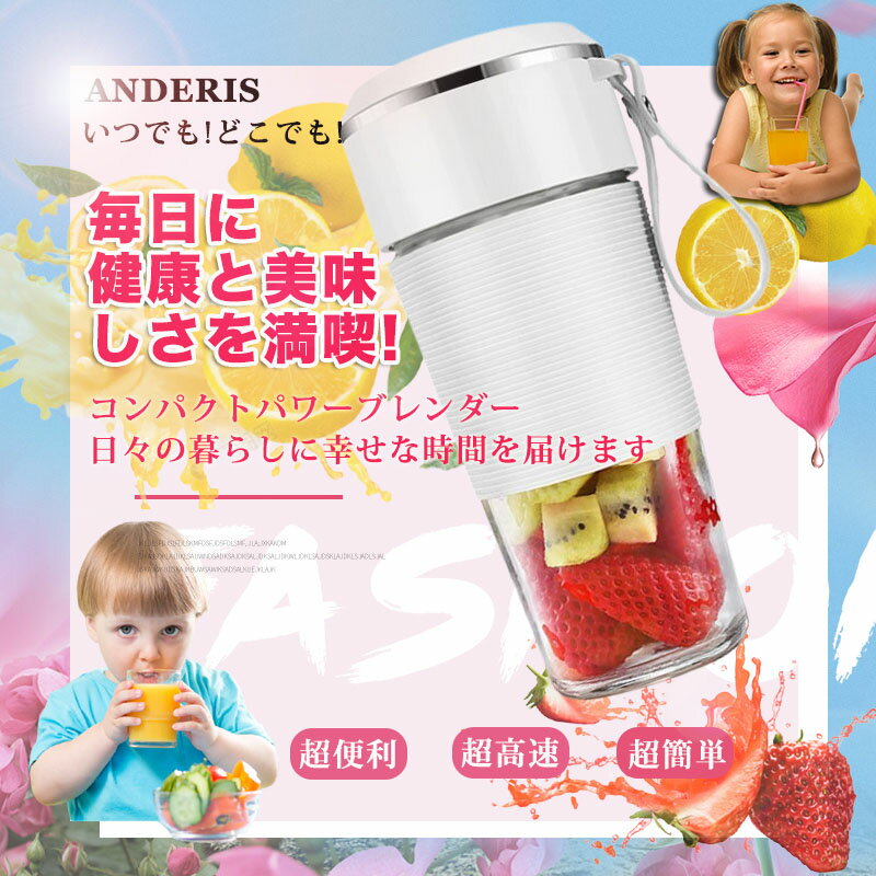 ANDERIS コンパクトパワーブレンダー 品番 K11 電圧 100v~110v カラー ホワイト 充電時間 約3時間 パッケージ 本体*1 コップ*1 レシピ集*1 USBケーブル*1 日本語取扱説明書*1 ステンレス環境保護ストロー*1 プレゼント包装*1 PSE認証 PSE認証取得済み サイズ 約85mm(幅)メ約85mm(奥行)X約185mm(長さ) ※本体にボトル取付時 機能 ★「超便利」軽くて使いやすい、重さ約600gの軽量モデル、重くないで長時間の使用でも疲れなくて、長い旅にも