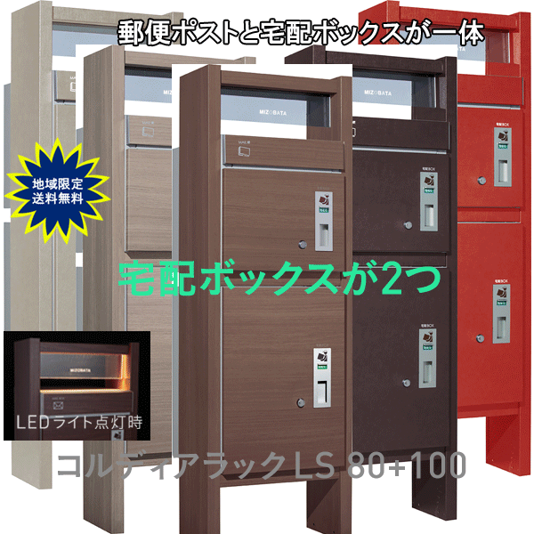 24.宅配ボックス 機能門柱 通販 再配達不要 宅配ポスト ユニット コルディアラックLS 80+100 LEDライト・サインプレート・ポスト付 シリンダー錠 郵便受け 門柱建て 地域限定品