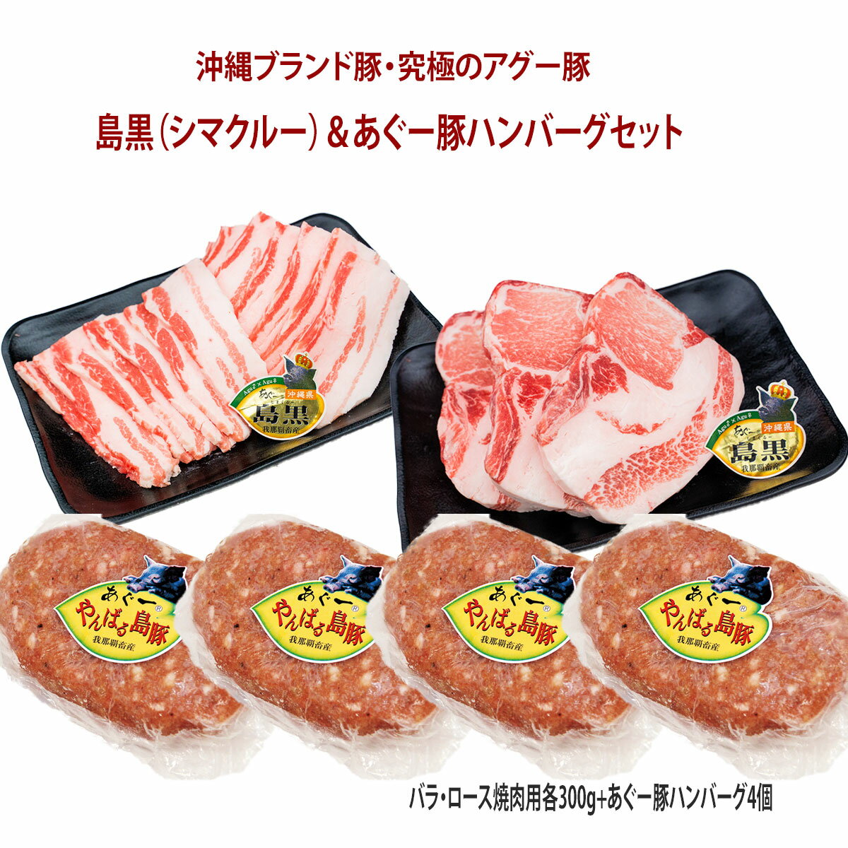 8.お中元【送料無料】フレッシュミートがなは 豚肉ギフト 焼肉 沖縄アグー豚 豚肉 我那覇畜産直送 高級豚肉 島黒(シマクルー)焼肉+あぐー豚ハンバーグセット ロース・バラ各300g+あぐー豚ハンバーグ4個(計1.2kg)ギフト 内祝い 国産 沖縄産 ブタ ぶた ブランド豚 お取り寄せ