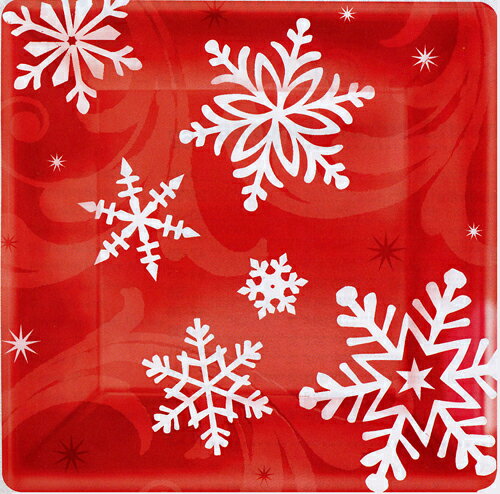 クリスマス用の紙食器、スノーフレーク・レッドの紙皿です。アメリカ製。8枚入。大きめの約25cm。丸ではなく四角のお皿です。おまけにキラキラのメタリック仕様。クリスマスパーティーに最適。 クリスマス用の紙食器、スノーフレーク・レッドの紙皿です。アメリカ製。8枚入。大きめの約25cm。丸ではなく四角のお皿です。おまけにキラキラのメタリック仕様。クリスマスパーティーに最適。