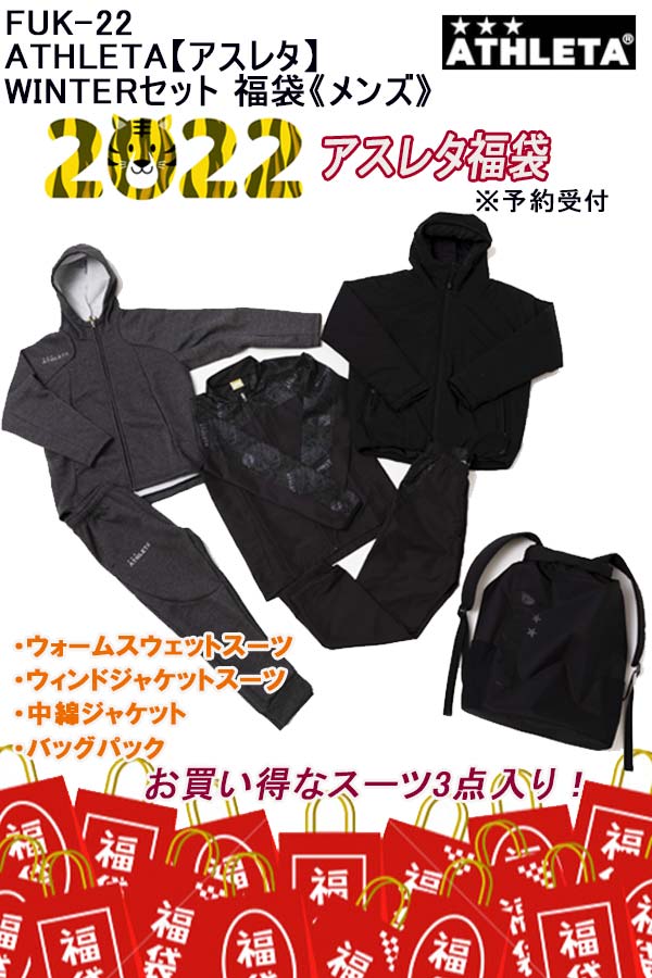 25.★先行予約★品番:FUK-22ATHLETA【アスレタ】2022年 WINTERセット 福袋《メンズ》ウォームスウェットスーツ ウィンドジャケットスーツ 中綿ジャケット バッグパック 上下セット セットアップ サッカー トレーニング ランニング