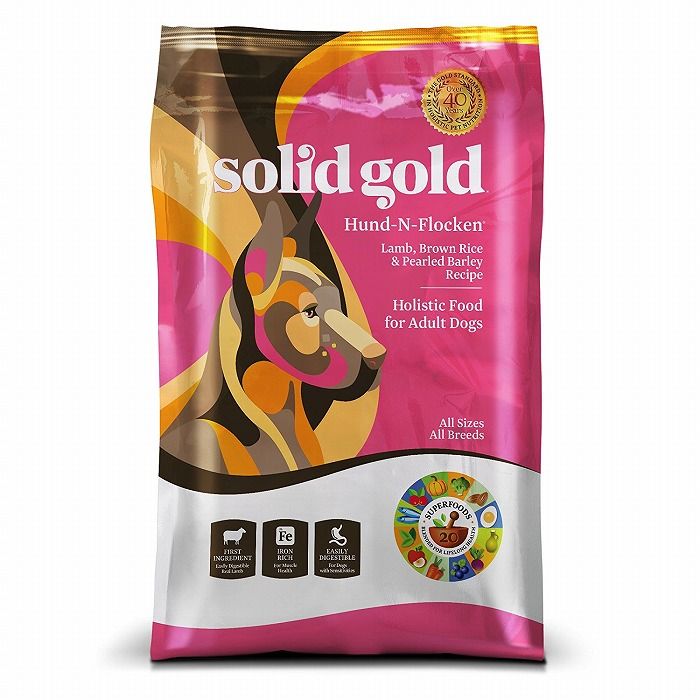 【商品詳細】老犬、成犬用原産国:アメリカソリッドゴールド フントフラッケン(成犬・老犬用)は成犬・老犬アレルギーを起こしにくいラム肉、玄米が主原料。 米国農務省厳選のホルモン剤、薬物の投与のない放牧飼育されたラム肉使用。原材料 ラム・ラムミール・玄米・挽き割り精製大麦・オートミール・エンドウ豆・米ぬか・オーシャンフィッシュミール・カノラ油(混合トコフェロールによる保存処理)・乾燥卵・天然風味料・フラックスシード・トマト絞り粕・DLメチオニン・塩化コリン・塩化カリウム・サーモン油(混合トコフェロールによる保