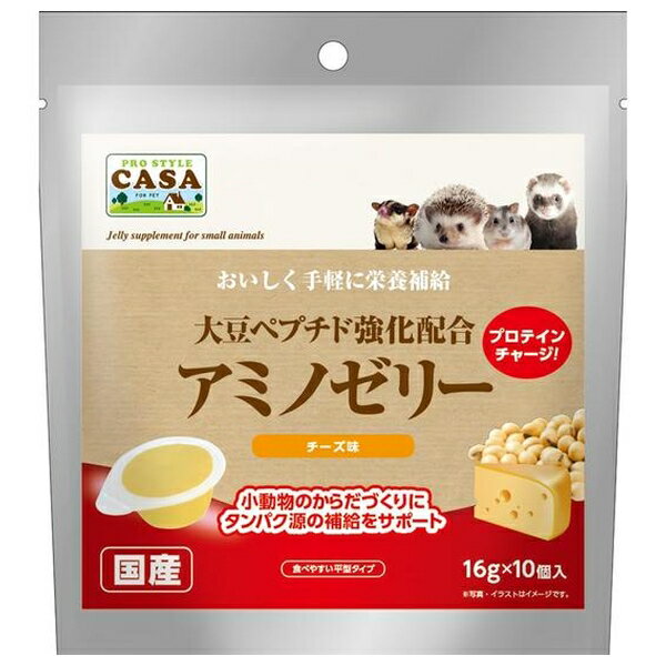 商品の特徴 マルカン アミノゼリーチーズ味 10個 ●雑食性小動物にぴったりなチーズ味で大豆ペプチドを配合したゼリーです。 ●大豆ペプチド配合。小動物のからだづくりにタンパク源の補給をサポートします。 【使用方法】 小動物のおやつとして 製品仕様 ●原材料 ブドウ糖果糖液糖、ブドウ糖、大豆ペプチド、カラメルソース、増粘安定剤(増粘多糖類、CMC)、酸味料、香料、乳化剤 ●内容量185g ●賞味期限:24カ月 ●原産国または製造地:日本 JANコード:4906456576815 ※商品詳細につきましてはメー