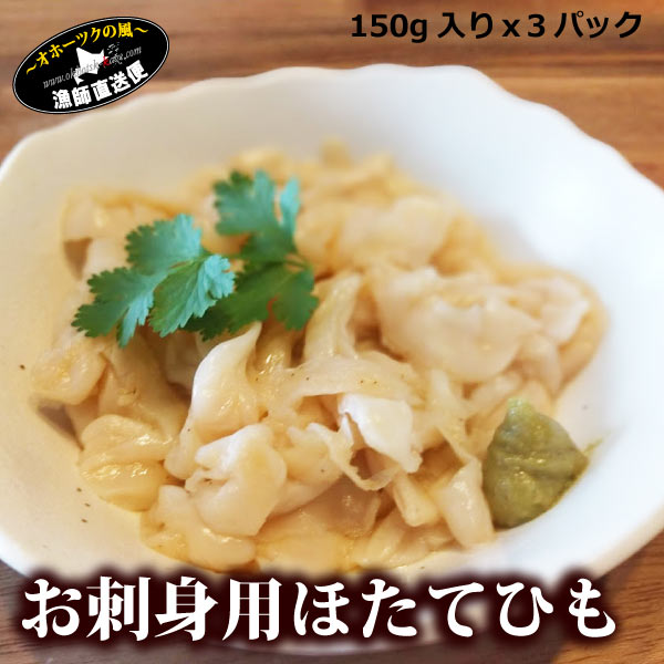 14.3Pまとめ買い『お刺身用 ホタテ ヒモ』(北海道野付産ほたてヒモ150g入りx3パック)帆立 北海道産 ひも ホタテヒモ ホタテヒモ ほたてひも 新春