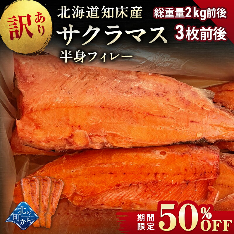 5.【期間限定50%OFF!9,960円⇒4,980円】訳あり サクラマス 半身フィレー 北海道 知床・羅臼産 総重量2kg前後 3枚前後 桜鱒 鱒 ます マス 天然 産地直送 フードロス