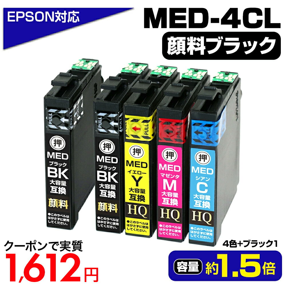 2.【実質1,612円★35%OFFクーポンあり!】【純正同等・顔料採用】MED-4CL 4色パック(BK顔料+C/M/Y(染料))+BK1本(顔料) エプソン メダマヤキ 互換大容量 互換インクカートリッジ med-4cl EPSONプリンター EW-056A EW-456A medインク med互換 顔料ブラック