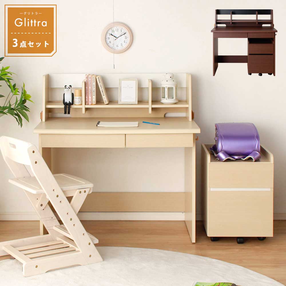 2.【15%OFFクーポン配布/週末限定】 勉強机 学習デスク シンプル 子供 高校生 大人 おしゃれ 【送料無料】 グリトラ 3点セット 学習デスク 上棚 ワゴン ワゴン付き 入学祝 卒業祝い ブラウン ホワイト
