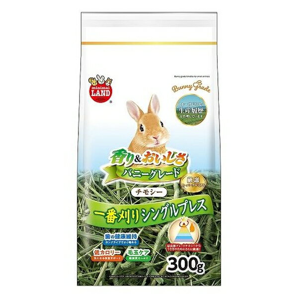 商品の特徴 マルカン バニーグレードチモシー 300g ●1番刈りシングルプレスの最高級チモシーの中から、うさぎの為に厳選。 ●お試しにも最適サイズ! 【使用方法】 ●他のフードと合わせて与え、いつでも食べられるようにしてください。●食べ残したり、汚れた牧草は毎日取り替えてください。※新鮮な水をいつも用意してあげまし 【使用上の注意】 ●本品は小動物専用の食べる牧草です。お子様が誤食しないようにご注意ください。 ●お子様のイタズラにご注意ください。またオモチャとして遊ばせないでください。 ●お子様がペット