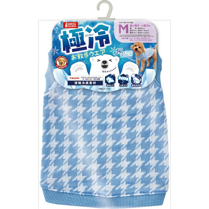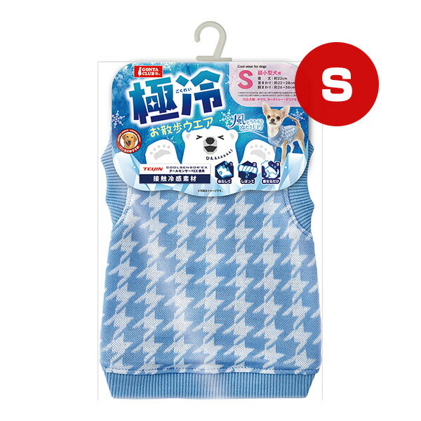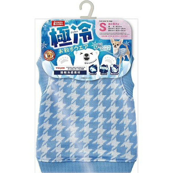 [マルカン]極冷お散歩ウエア S接触冷感糸を使用したお散歩ウエア千鳥柄のニット生地は伸縮性に優れていて着せやすい。そのままでもひんやり、濡らして絞って着せるとさらに冷感効果が高まります適応サイズ(首囲):約22〜28cm適応サイズ(胴囲):約26〜36cm適応サイズ(背丈):約22cm[お手入れ方法]・この製品はデザイン性や風合いを重視し、非常にデリケートな素材を使用しています。糸切れや破れの恐れがありますのでご了承ください。・着用中の摩擦により、毛羽立ちや毛抜け、また他の物に付着することがあります。付着