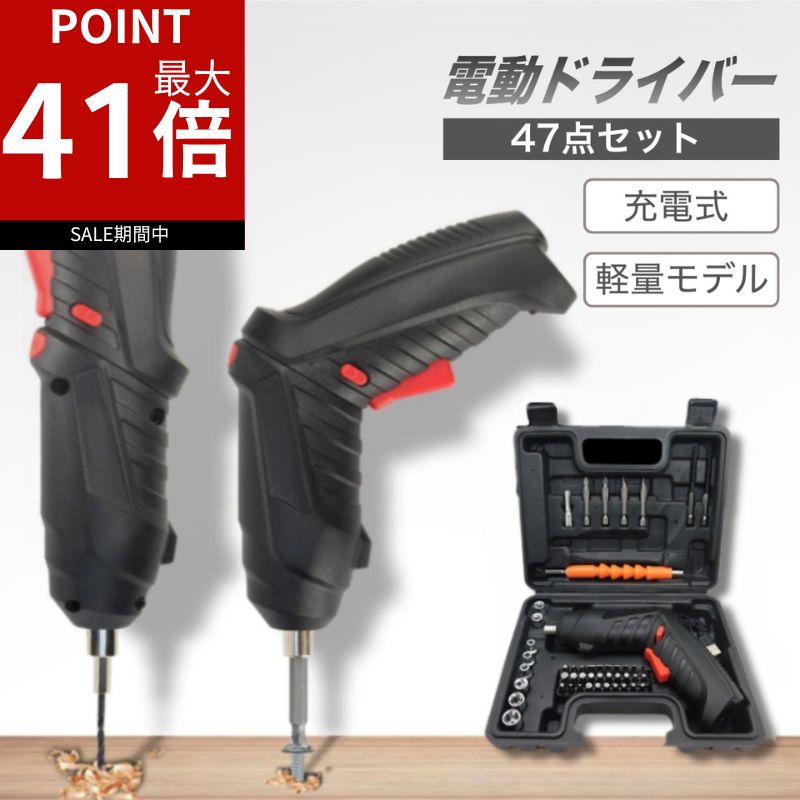 6.【ポイント最大41倍!】 電動ドライバーセット 小型 軽量 47点セット USB充電式 コードレス 2WAY 変形式 ドリル ドライバー 六角レンチ ビット 工具セット コンパクト DIY 女性にも人気 家庭用 修理 組立 家具 大工 道具 持ち運び便利