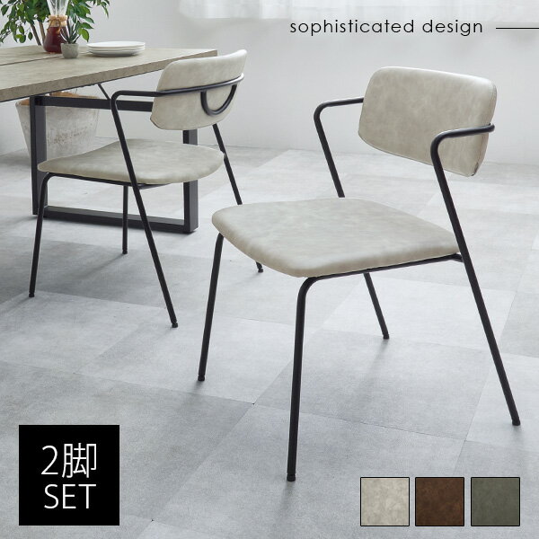 お買い物ガイド ステッチ入りの座面に細身のブラックスチールを組み合わせた スタイリッシュなダイニングチェア2脚セット。 沈み込みの少ない弾力のある座り心地なので、 食事やデスクワークなどの作業時でも疲れにくくゆったりと座れます。 座面シートはヴィンテージ感を楽しめるよう、 エイジング加工をしています。 経年変化をしたような味わい深い色合いに仕上げています。 カラーはダークブラウン・ダークグレー・ライトグレーの 3色からお選びいただけます。 【商品サイズ(約)】幅45×奥行54×高さ78.5cm 【梱包サイ