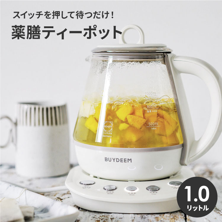 【11/18限定 クーポンでほぼ全品10%OFF!】 BUYDEEM バイディーム 薬膳ティーポット 1.0L おしゃれ 電気ポット 電気ケトル 薬膳茶 健康茶 紅茶 保温 ポット ミルク ガラスケトル ティーポット 電気 ケトル 19,800円 送料無料 [クラハコ] | 10%OFF