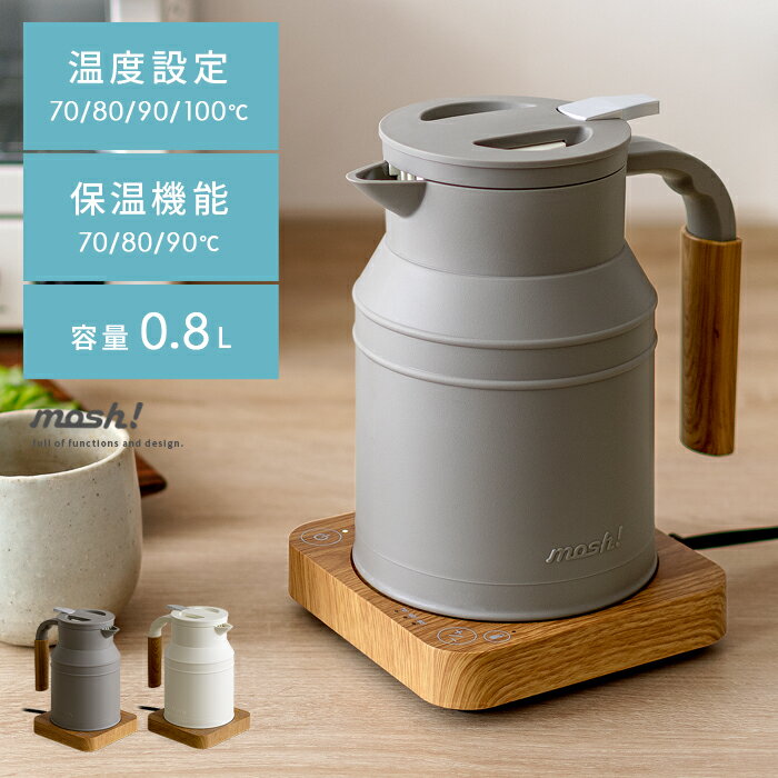 【全品対象!10%OFFクーポン配布中】 電気ケトル ケトル 電気 おしゃれ コードレス 設定機能付き クラシック レトロ 北欧 0.8L 軽量 温度調節 保温 保温機能 やかん ヤカン コンパクト アイボリー ブラウン 白 茶 ミルクタンク MOSH!(モッシュ)電気ケトル 11,270円 送料無料 レビュー平均4.8(10件) [エア・リゾーム インテリア] | 10%OFF