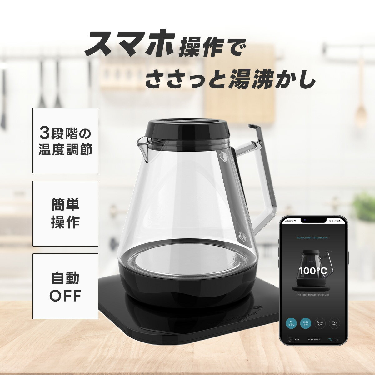 【全20%OFFクーポン配布ご愛顧セールP4倍最大】送料無料 スマート電気ケトル WaterCooker 簡単操作 3段階の温度調節 安心の自動OFF機能 ガラス製 スマホ対応 おしゃれ 3時間保温 9,800円 送料無料 レビュー平均1.5(2件) [つなぐマルシェ] | 20%OFF