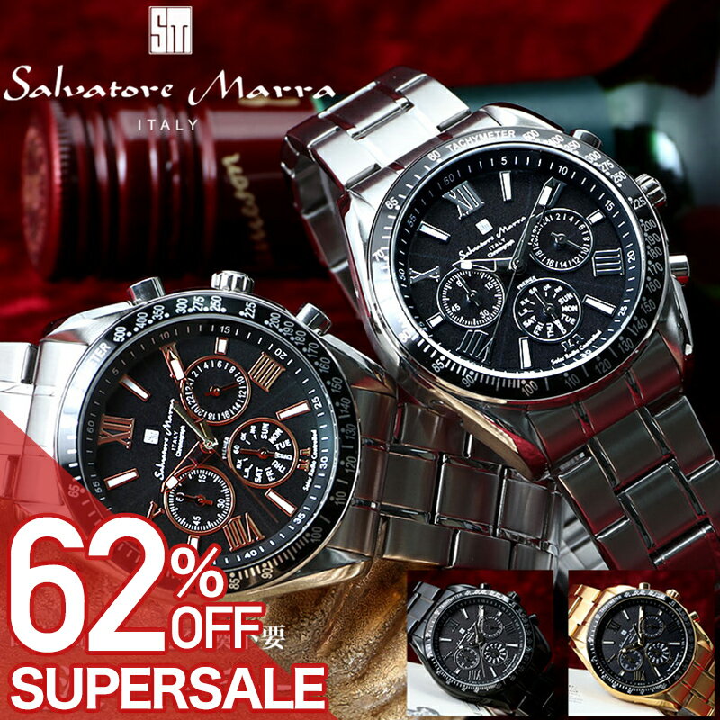 【50%OFF半額 30250円引】【二種のベルトが楽しめる】限定モデル サルバトーレマーラ 時計 メンズ 腕時計 電波ソーラー ソーラー電波 クロノグラフ 電波 ソーラー 電波受信 カレンダー ブランド プレゼント シルバー ブルー ブラック ゴールド メタル レザー 革ベルト 27,280円 送料無料 セール終了日 12/11 01:59 レビュー平均4.43(7件) [腕時計専門店ハイブリッドスタイル] | 50%OFF