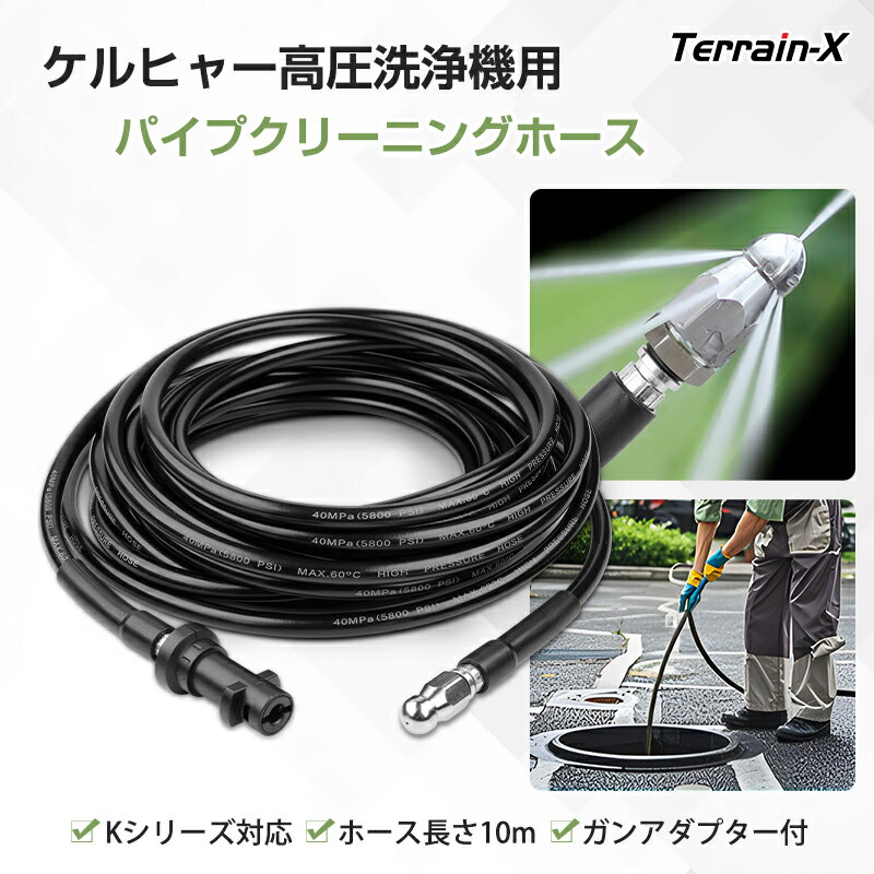 \Open Sale!クーポンで全品10%OFF/「社外互換品」ケルヒャー パイプクリーニングホース 10m ガンアダプター付き Kシリーズ対応 K2 K3 K4 K5 排水管 つまり除去 配管 掃除 ホース 高圧洗浄機 ケルヒャー用 4方向 噴射 高圧洗浄 パイプ 洗浄 ホース 2,880円 送料無料 [Aurauto] | 10%OFF