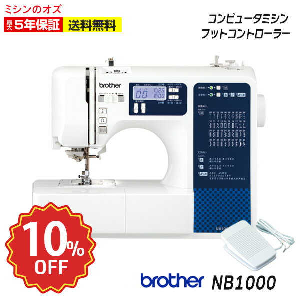 【10%OFF!スーパーセール限定!】【フットコントローラー付】NB1000 ミシン ブラザー コンピュータミシン 文字縫い 初心者 NB-1000 本体 31,320円 送料無料 セール終了日 12/11 01:59 レビュー平均4.61(277件) [ミシンのオズ] |