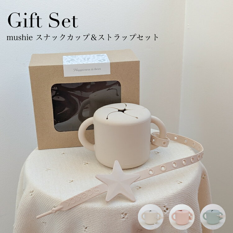 【スーパーセール 10%OFF】【mushie正規品】 ムシエ ギフトセット トイストラップ スナックカップ おやつ入れ おもちゃホルダー ストラップ 女の子 男の子 北欧 ギフト 出産祝い 誕生日 プレゼント 赤ちゃん シリコン かわいい おしゃれ 誕生日