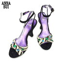 【24%OFFクーポン】アナスイ ANNA SUI サンダル シューズ 靴 レディース ♯M ブラック ホワイト 白 スエード×ハラコ 【アナスイ】 T9242 【中古】 20,579円 送料無料 [ブランドデポ TOKYO] | 24%OFF