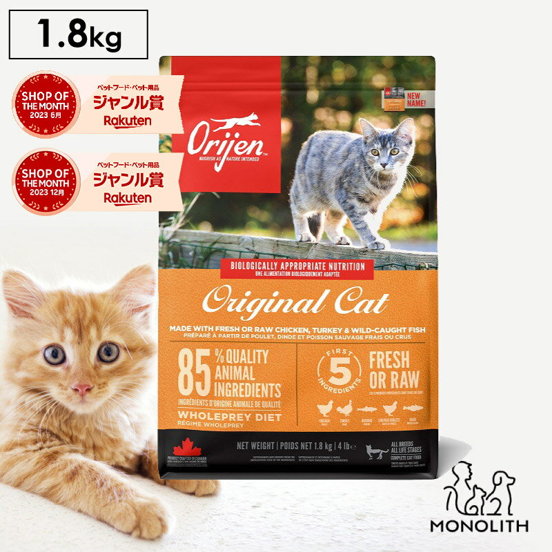 \25%OFF!11/20 20:00〜11/27 1:59/オリジン オリジナルキャット 1.8kg 1.8キロ あす楽 キャットフード 正規品 猫 猫用 体重管理 肥満 肉 魚 骨 レバー 高蛋白質 ビタミン ミネラル 酵素 必須アミノ酸 ペットフード 無添加 6,600円 送料無料 セール終了日 11/27 01:59 レビュー平均4.75(4件) [人とペットのサプリ専門店モノリス] | 15%OFF