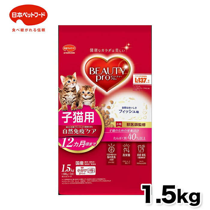 【12/3 20:00〜 10%OFF】【日本ペットフード】ビューティープロ キャット 子猫用 12ヵ月頃まで 1.5kg 猫 ねこ キャットフード プレミアムフード 主食 国産 健康 1,810円 セール終了日 12/11 01:59 [PET THREE] | 10%OFF