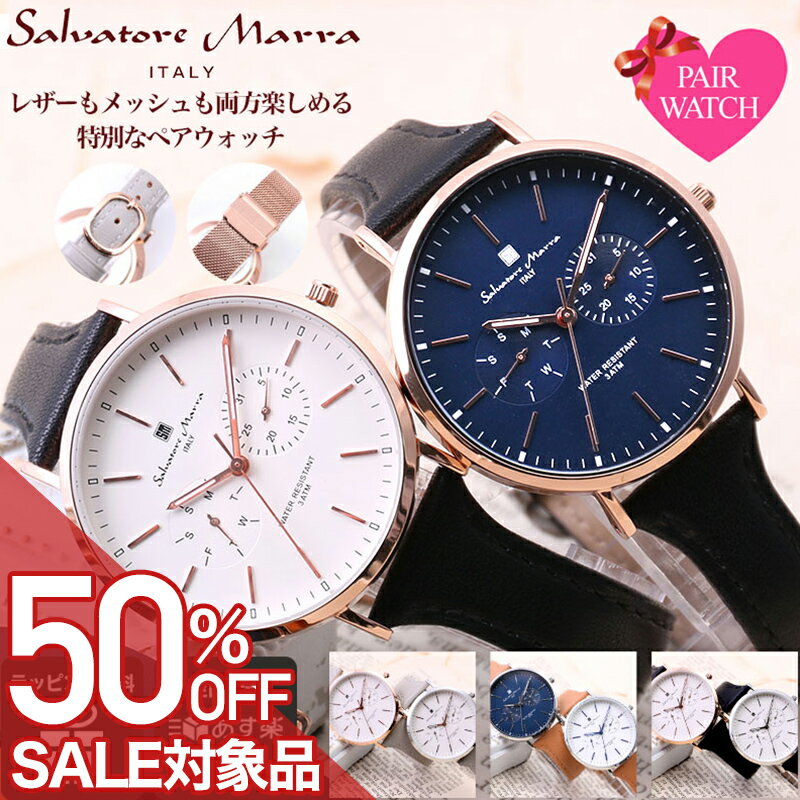 【51%OFF半額 28,468-円引】【 ペアウォッチ 夫婦 】 サルバトーレマーラ 腕時計 時計 ペア メンズ レディース アナログ シンプル メッシュ メッシュベルト 革 本革 革ベルト レザー レザーベルト 男性 女性 夫 旦那 様 主人 妻 奥さん 嫁 さん プレゼント 結婚記念日 22,968円 送料無料 セール終了日 03/11 01:59 レビュー平均4.5(34件) [腕時計ギフトのパピヨン] | 50%OFF