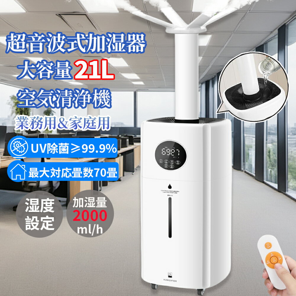 【全品20%OFFクーポン】 加湿器 業務用 家庭用 大容量 21L 超音波加湿器 70畳 UV除菌 空気清浄機 3段階 連続30時間加湿 4つ吹出口 2種類ノズル スチーム 上から給水 次亜塩素酸水対応 リモコン付 省エネ 花粉対策 乾燥対策 オフィス リビング 2025 17,982円 送料無料 セール終了日 12/11 01:59 [ファミリーマーケット] | 20%OFF