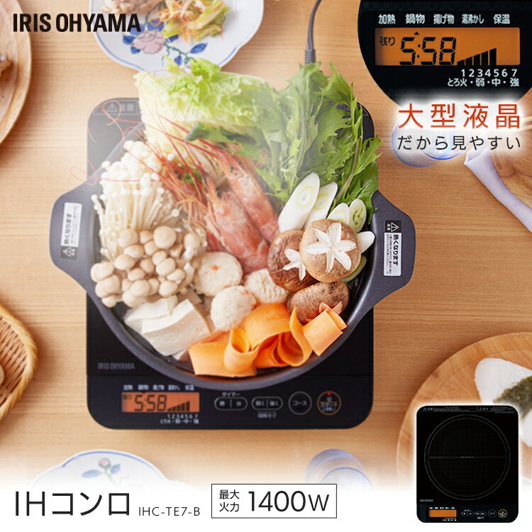 《20%OFF》 1口IHコンロ 1400W 液晶付き ブラック IHC-TE7-B 調理家電 クッキングヒーター パネル付 焼く 温める 炒める 煮る 茹でる 沸かす 黒 アイリスオーヤマ £【B】[2512SE] 8,780円 送料無料 セール終了日 12/11 01:59 [家具インテリア館] |