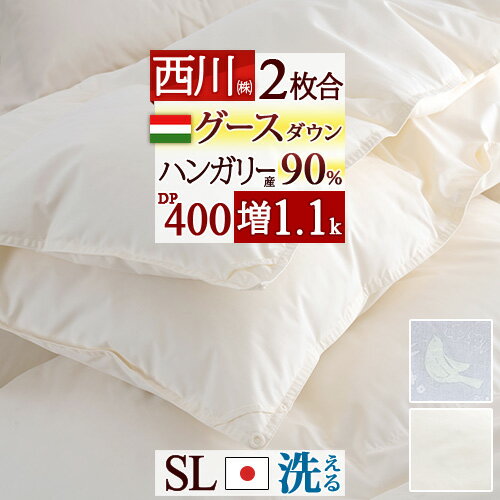 冬 あったか★最大10%OFFクーポン 羽毛布団 シングル 西川 グース 2枚合わせ シングルサイズ ハンガリー産グースダウン90% 1.1kg 羽毛ふとん DP400 抗菌 洗えるコインランドリー対応 日本製 2枚合せ 二枚合わせ 合い掛け 肌掛け ツインダウン オールシーズン 69,999円 送料無料 レビュー平均4.75(4件) [ふとんタウン 西川など寝具専門店] |