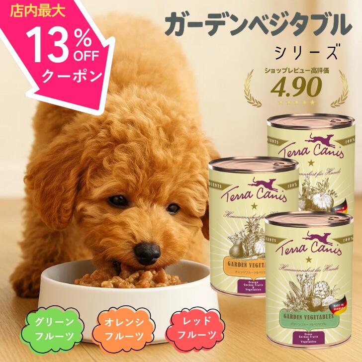 【20日〜27日ブラックフライデー☆最大13%OFFクーポン】 テラカニス ガーデンベジタブル シリーズ 400g グリーンフルーツ オレンジフルーツ レッドフルーツ ドッグフード ヒューマングレード ウェット ドッグフード 犬 犬の餌 缶詰 無添加 犬ご飯 トッピング 野菜 最強配送 1,188円 レビュー平均1(1件) [アンジュペット] | 13%OFF