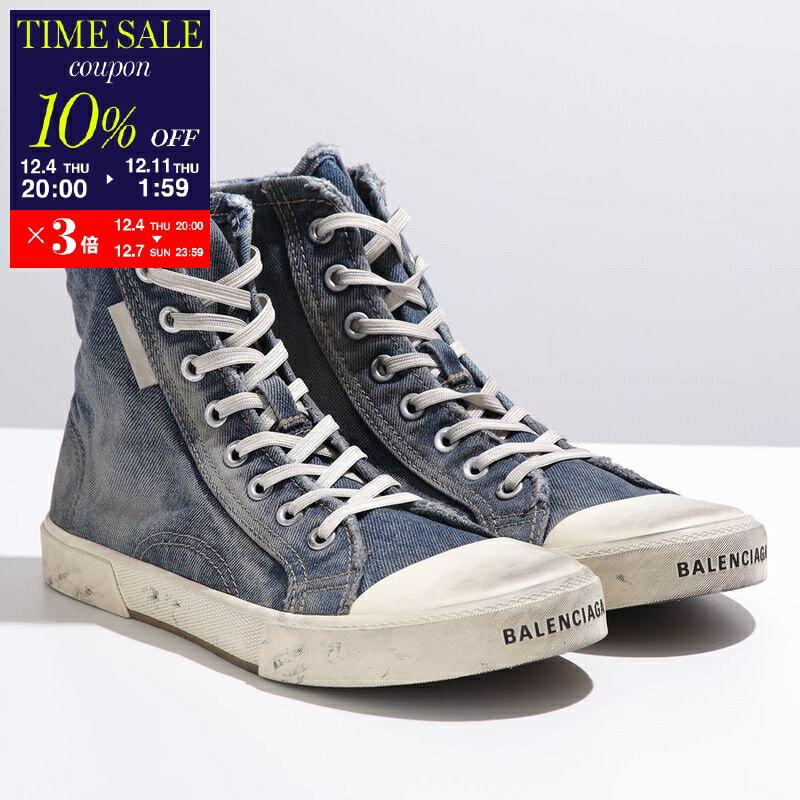【10%OFFクーポン対象・12/4-20時〜】BALENCIAGA バレンシアガ スニーカー PARIS HIGH TOP 688752 W3RCL メンズ ハイカット デニム ユーズド加工 ロゴ シューズ 靴 4090/BLUE【cp_ten】 69,990円 送料無料 レビュー平均5(1件) [インポートセレクトmusee] | 10%OFF