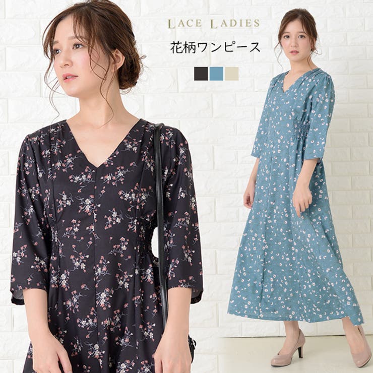 【10%OFFクーポン!11/27(木)1:59まで】レースレディース 花柄ワンピース フラワープリント 、マキシ ワンピース カジュアル きれいめ 小花柄 5分袖 7分袖 ロング丈 フレア 女子会 デート黒 ブラック ブルー アイボリー 20代 30代 7,900円 [SHOPLIST] | 10%OFF