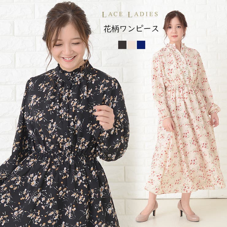 【10%OFFクーポン!11/27(木)1:59まで】レースレディース 花柄ワンピース フラワープリント フレアワンピ カジュアル きれいめ 小花柄 長袖 ロング丈 フレア 女子会 デート 黒 ブラックネイビー アイボリー 20代 30代 レディース 春 7,900円 [SHOPLIST] | 10%OFF